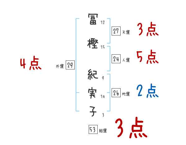 冨樫紀実子さんの画数の鑑定結果