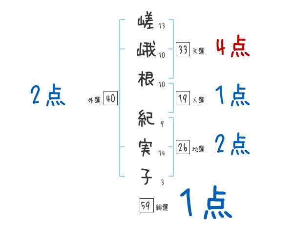 嵯峨根紀実子さんの画数の鑑定結果