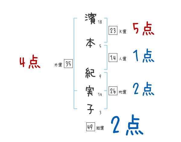 濱本紀実子さんの画数の鑑定結果
