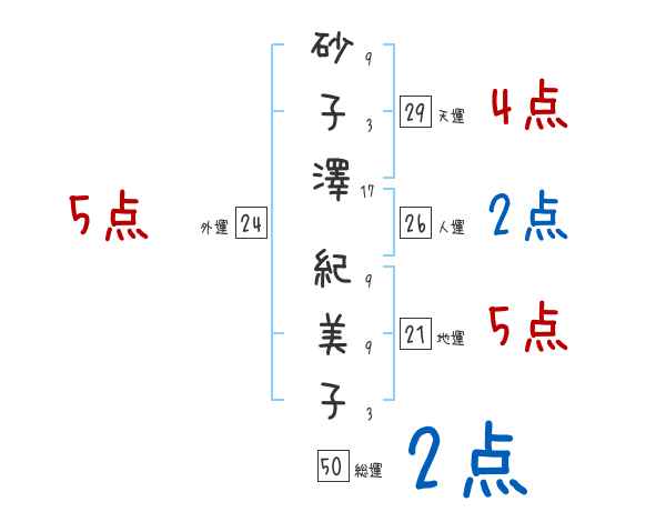 砂子澤紀美子さんの画数の鑑定結果