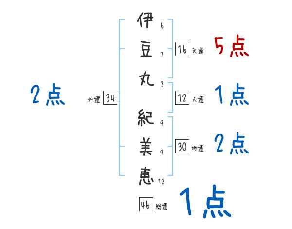 天運![]() | 伊豆丸紀美恵さんの天運は16画の5つ星!人望が厚く大きく発展する。逆転成功が見える。 家系が持つ宿命的な運勢を表します。祖先から受け継いだ苗字ですので自分の力が及びません。家柄を象徴します。 |