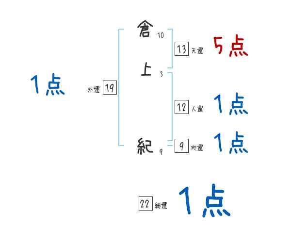 外運![]() | 倉上紀さんの外運は19画の1つ星!優れた才能を持ちますが、協調性が足りないことも。周りの人と協力する事を意識しましょう。 生活面を象徴する運勢です。外部から受ける影響力を表し、結婚運、家庭運や職場、環境への順応性を表します。 |