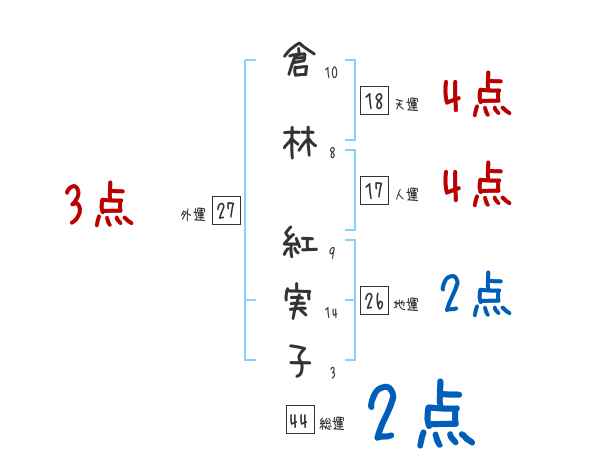 倉林紅実子さんの画数の鑑定結果