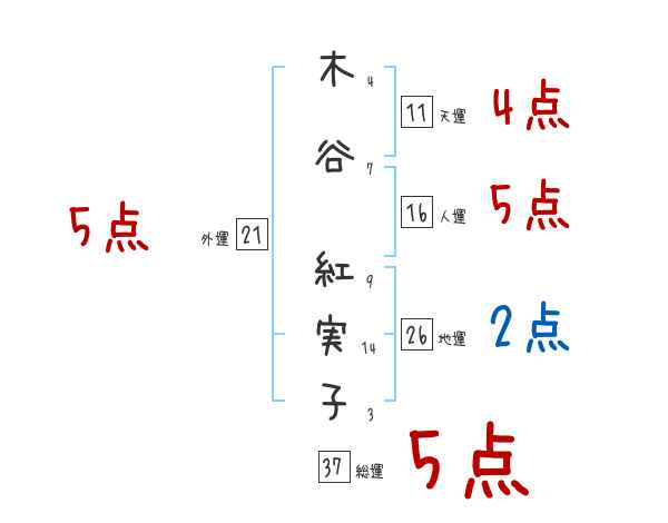 木谷紅実子さんの画数の鑑定結果