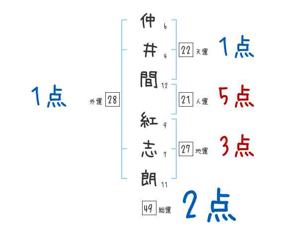 天運![]() | 仲井間紅志朗さんの天運は22画の1つ星!努力することが苦手ないっぽう手先が器用。芸術性にも優れる。 家系が持つ宿命的な運勢を表します。祖先から受け継いだ苗字ですので自分の力が及びません。家柄を象徴します。 |