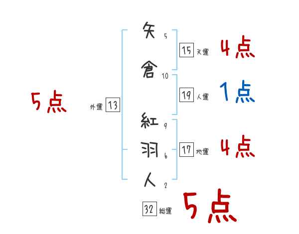 矢倉紅羽人さんの画数の鑑定結果