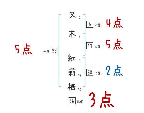 総運![]() | 又木紅莉栖さんの総運は36画の3つ星!先見性が豊かです。多少神経質で苦労することも。 あなたの人生を表す1番重要な運勢です。生涯を通じて影響する総合運となり、主に50歳以降の晩年期に影響を及ぼします。 |