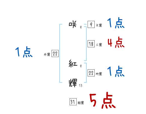 咲紅輝さんの画数の鑑定結果