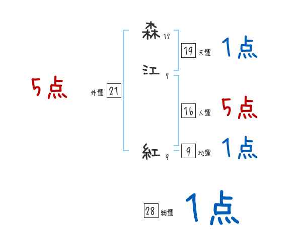 森江紅さんの画数の鑑定結果