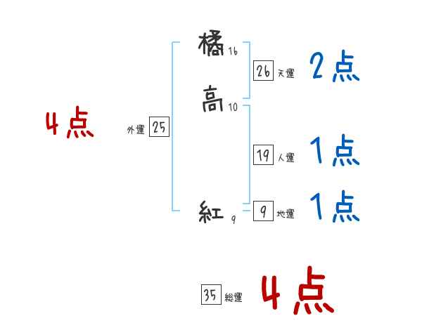 天運![]() | 橘高紅さんの天運は26画の2つ星!波瀾万丈かも。信頼できる人を大事にしましょう。 家系が持つ宿命的な運勢を表します。祖先から受け継いだ苗字ですので自分の力が及びません。家柄を象徴します。 |