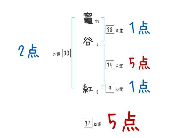 竈谷紅さんの画数の鑑定結果