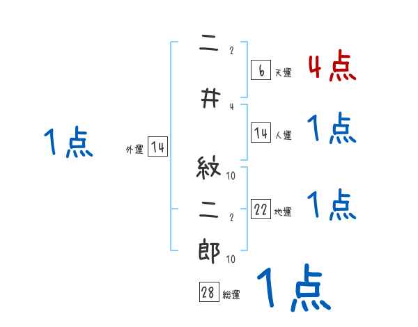 二井紋二郎さんの画数の鑑定結果