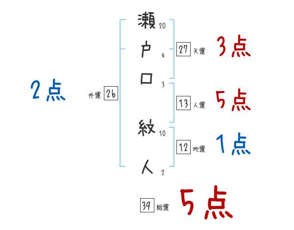 家系が持つ宿命的な運勢を表します。祖先から受け継いだ苗字ですので自分の力が及びません。家柄を象徴します。