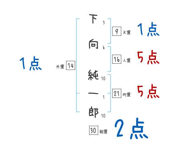 人運![]() | 下向純一郎さんの人運は16画の5つ星!人望が厚く大きく発展する。逆転成功が見える。 性格や才能などを表す2番目に重要な運勢です。人間関係や協調性、社会的な成功に影響します。主に20歳から50歳ぐらいまでの中年期の運勢を表します。 |
