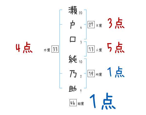 瀬戸口純乃助さんの画数の鑑定結果