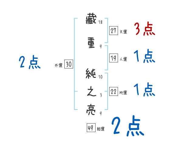 藏重純之亮さんの画数の鑑定結果