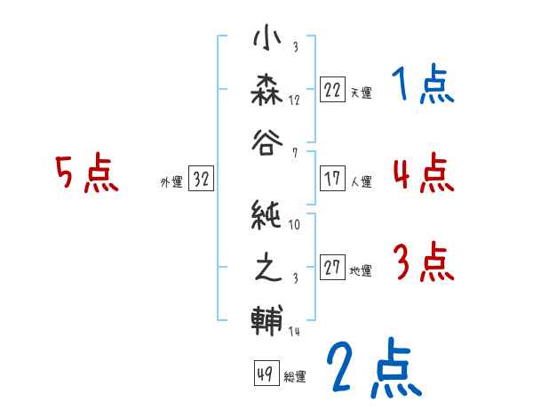 小森谷純之輔さんの画数の鑑定結果