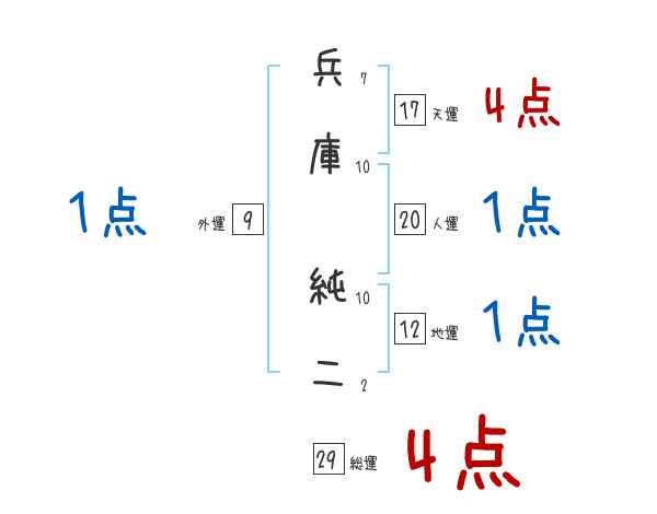 兵庫純二さんの画数の鑑定結果