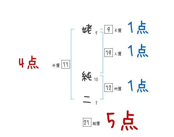 姥純二さんの画数の鑑定結果