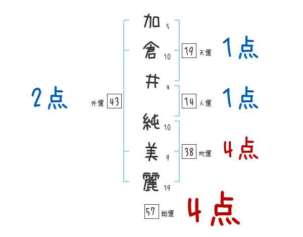 ただ、あまり画数の運勢に固執しすぎないで、やはり漢字や響きのイメージを大事にされると良いと思います。ご両親がかわいいお子様に、こんな子に育ってほしいと願い想いを込めて、名前を考えられる事が何より大事です。