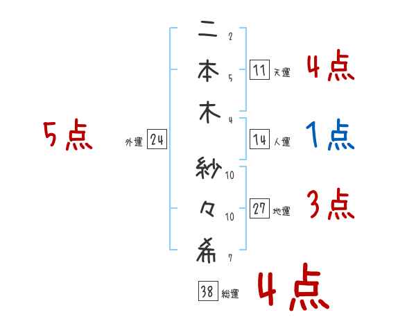 二本木紗々希さんの画数の鑑定結果