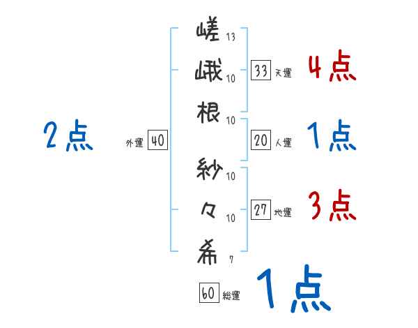 嵯峨根紗々希さんの画数の鑑定結果