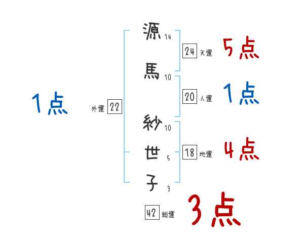 天運![]() | 源馬紗世子さんの天運は24画の5つ星!家庭運が良く順調な人生。金運にも恵まれる。 家系が持つ宿命的な運勢を表します。祖先から受け継いだ苗字ですので自分の力が及びません。家柄を象徴します。 |