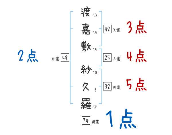 渡嘉敷紗久羅さんの画数の鑑定結果