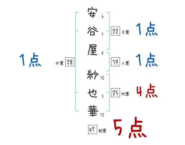安谷屋紗也華さんの画数の鑑定結果