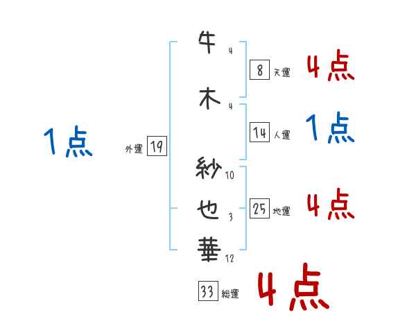 天運![]() | 牛木紗也華さんの天運は8画の4つ星!勤勉家。根気強く努力し成功する。忍耐力がある。 家系が持つ宿命的な運勢を表します。祖先から受け継いだ苗字ですので自分の力が及びません。家柄を象徴します。 |