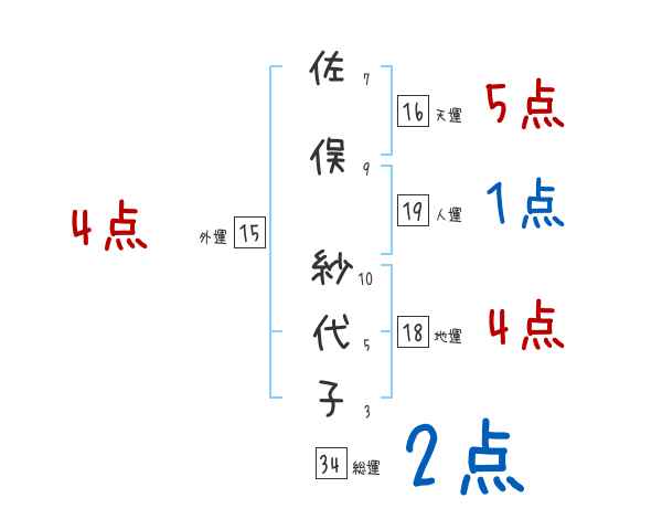 総運![]() | 佐俣紗代子さんの総運は34画の2つ星!独創性に優れるが、自尊心が強く災難に注意しましょう。 あなたの人生を表す1番重要な運勢です。生涯を通じて影響する総合運となり、主に50歳以降の晩年期に影響を及ぼします。 |
