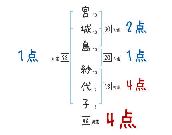 宮城島紗代子さんの画数の鑑定結果