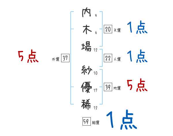 内木場紗優稀さんの画数の鑑定結果