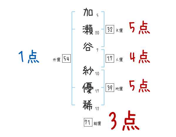 天運![]() | 加瀬谷紗優稀さんの天運は32画の5つ星!柔軟性があり成功する。チャンスが多く金運が良い。 家系が持つ宿命的な運勢を表します。祖先から受け継いだ苗字ですので自分の力が及びません。家柄を象徴します。 |