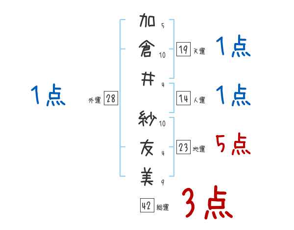 外運![]() | 加倉井紗友美さんの外運は28画の1つ星!家庭環境に注意。スポーツで活躍できる能力があるかも。 生活面を象徴する運勢です。外部から受ける影響力を表し、結婚運、家庭運や職場、環境への順応性を表します。 |