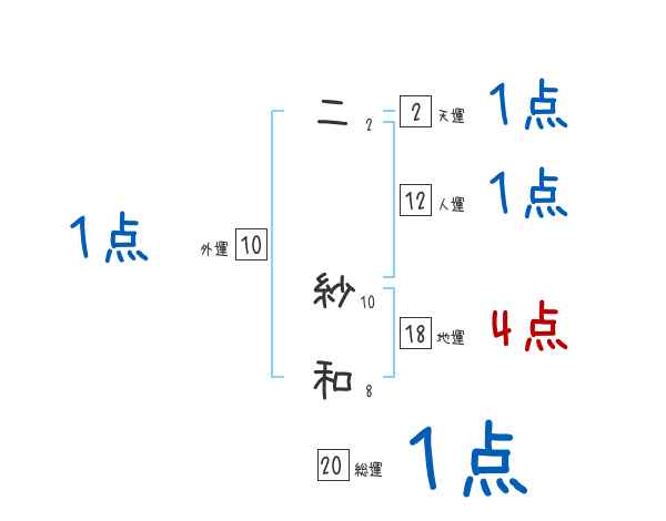 二紗和さんの画数の鑑定結果
