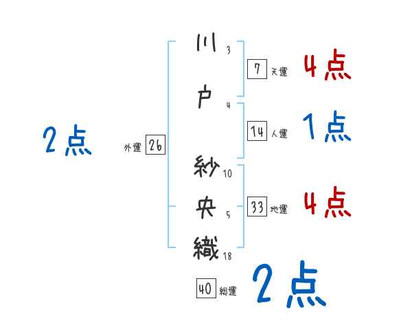外運![]() | 川戸紗央織さんの外運は26画の2つ星!波瀾万丈かも。信頼できる人を大事にしましょう。 生活面を象徴する運勢です。外部から受ける影響力を表し、結婚運、家庭運や職場、環境への順応性を表します。 |