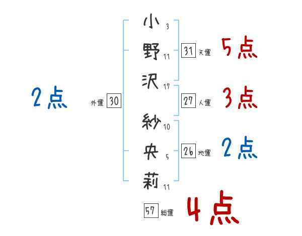 小野沢紗央莉さんの画数の鑑定結果