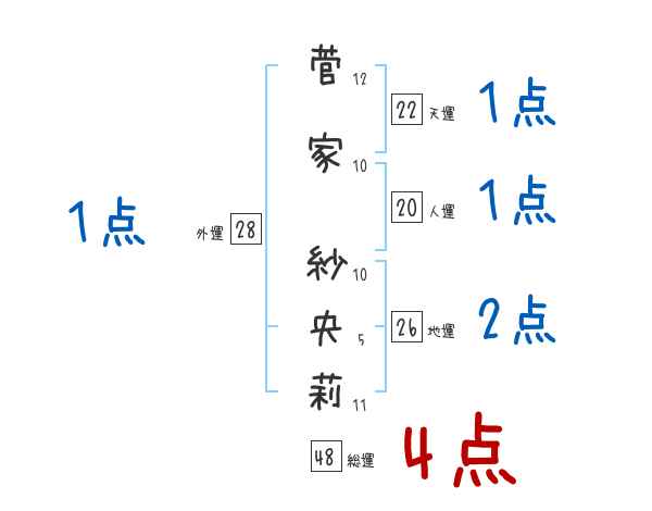 菅家紗央莉さんの画数の鑑定結果