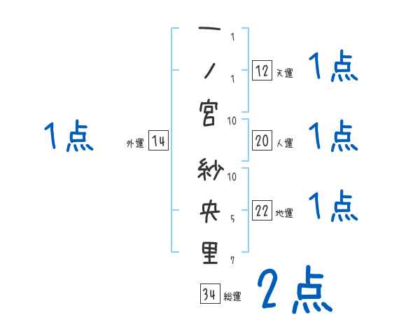 一ノ宮紗央里さんの画数の鑑定結果
