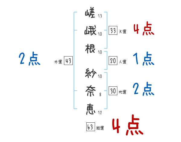 嵯峨根紗奈恵さんの画数の鑑定結果