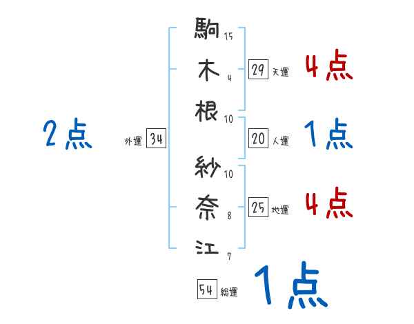 駒木根紗奈江さんの画数の鑑定結果