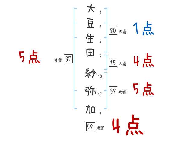 外運![]() | 大豆生田紗弥加さんの外運は37画の5つ星!努力家で順応性に優れる。現実的な考え方ができ忠実に物事をこなす。 生活面を象徴する運勢です。外部から受ける影響力を表し、結婚運、家庭運や職場、環境への順応性を表します。 |