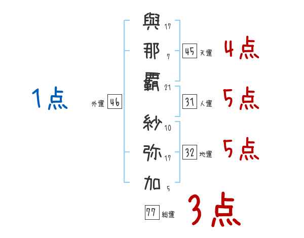 與那覇紗弥加さんの画数の鑑定結果
