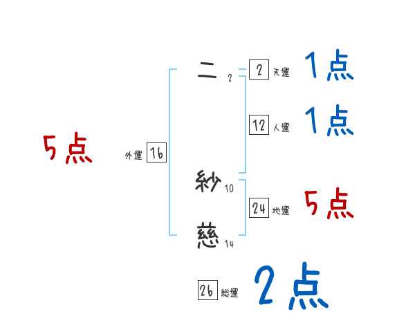 二紗慈さんの画数の鑑定結果