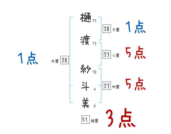 総運![]() | 樋渡紗斗美さんの総運は51画の3つ星!変化が激しく、危険に注意。堅実な性格。 あなたの人生を表す1番重要な運勢です。生涯を通じて影響する総合運となり、主に50歳以降の晩年期に影響を及ぼします。 |