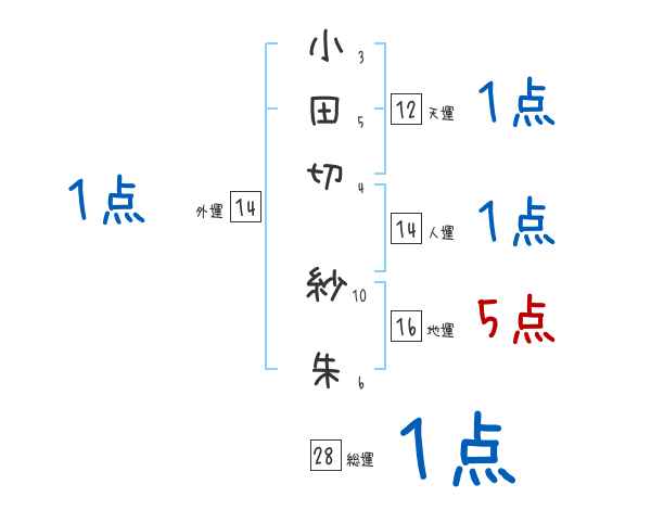総運![]() | 小田切紗朱さんの総運は28画の1つ星!家庭環境に注意。スポーツで活躍できる能力があるかも。 あなたの人生を表す1番重要な運勢です。生涯を通じて影響する総合運となり、主に50歳以降の晩年期に影響を及ぼします。 |