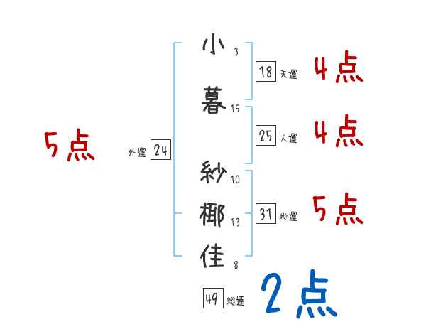 外運![]() | 小暮紗椰佳さんの外運は24画の5つ星!家庭運が良く順調な人生。金運にも恵まれる。 生活面を象徴する運勢です。外部から受ける影響力を表し、結婚運、家庭運や職場、環境への順応性を表します。 |