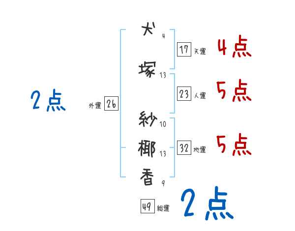 犬塚紗椰香さんの画数の鑑定結果