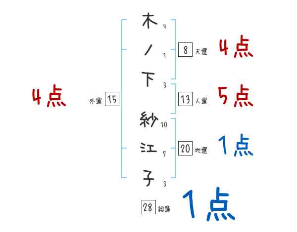 木ノ下紗江子さんの画数の鑑定結果